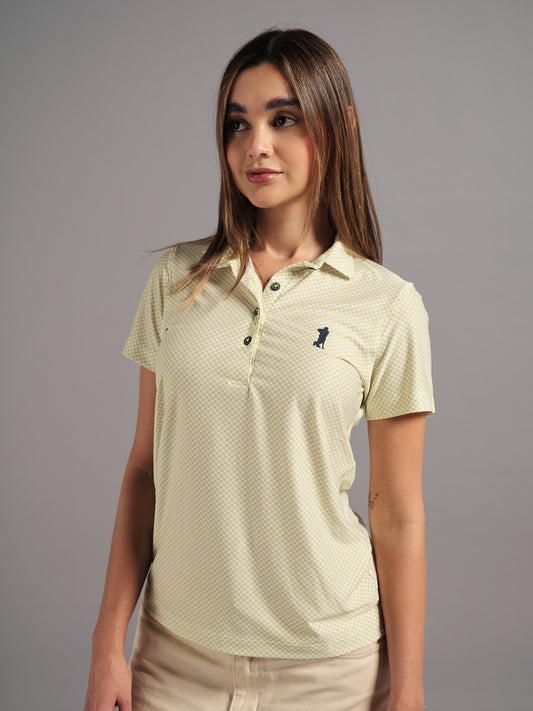 Polo de Golf para Mujer Cuadros Verdes y Blancos – Manga Corta