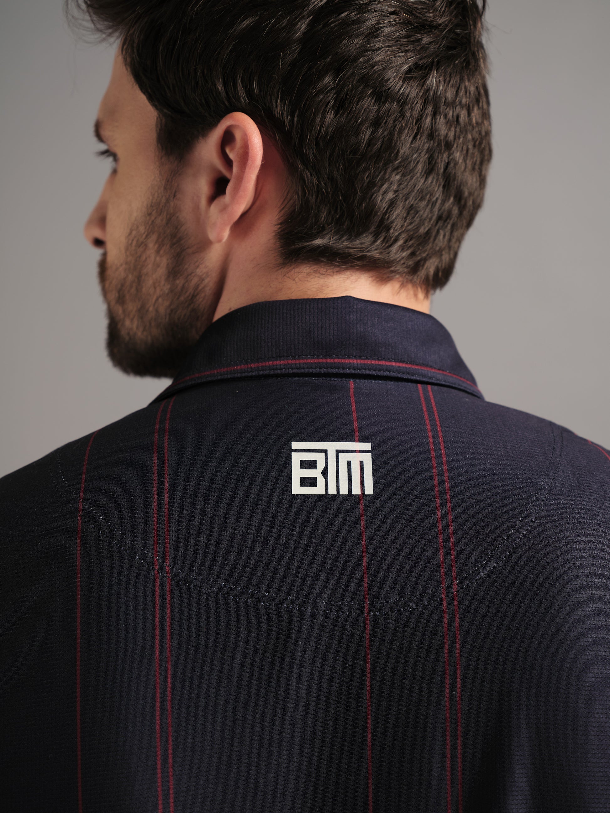 Polo Azul Oscuro con Rayas “Vertical Vision” – Hombre, Manga Corta
